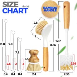 • Fruit and Vegetable Cleaning Brush Set. Find immense joy in washing vegetables & dishes with our kitchen cleaning brush kit. It includes a large bottle brush, a long handle brush for dishes, a vegetable palm scrubber brush and 3 straw tube brushes. With a variety of kitchen brushes, you’ll easily take on everyday dish cleaning removing even the most stubborn dirt.